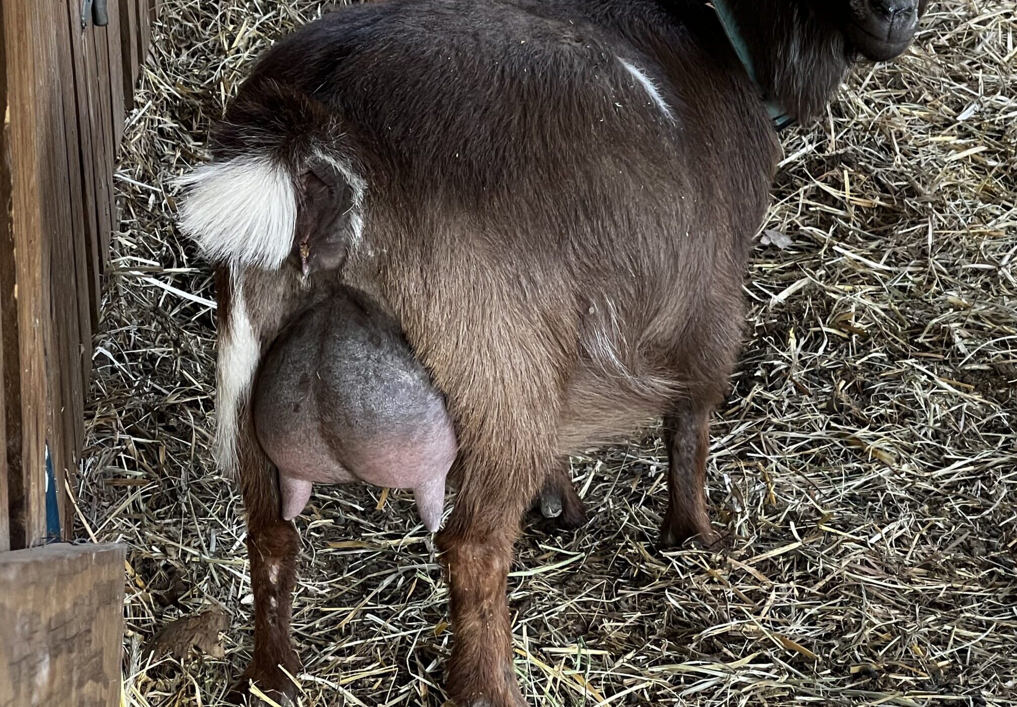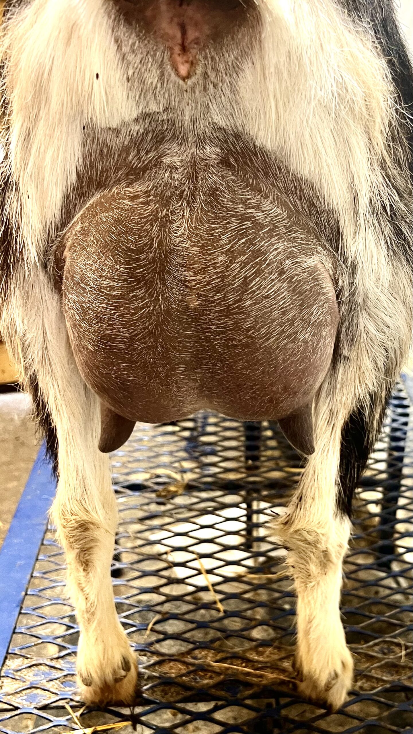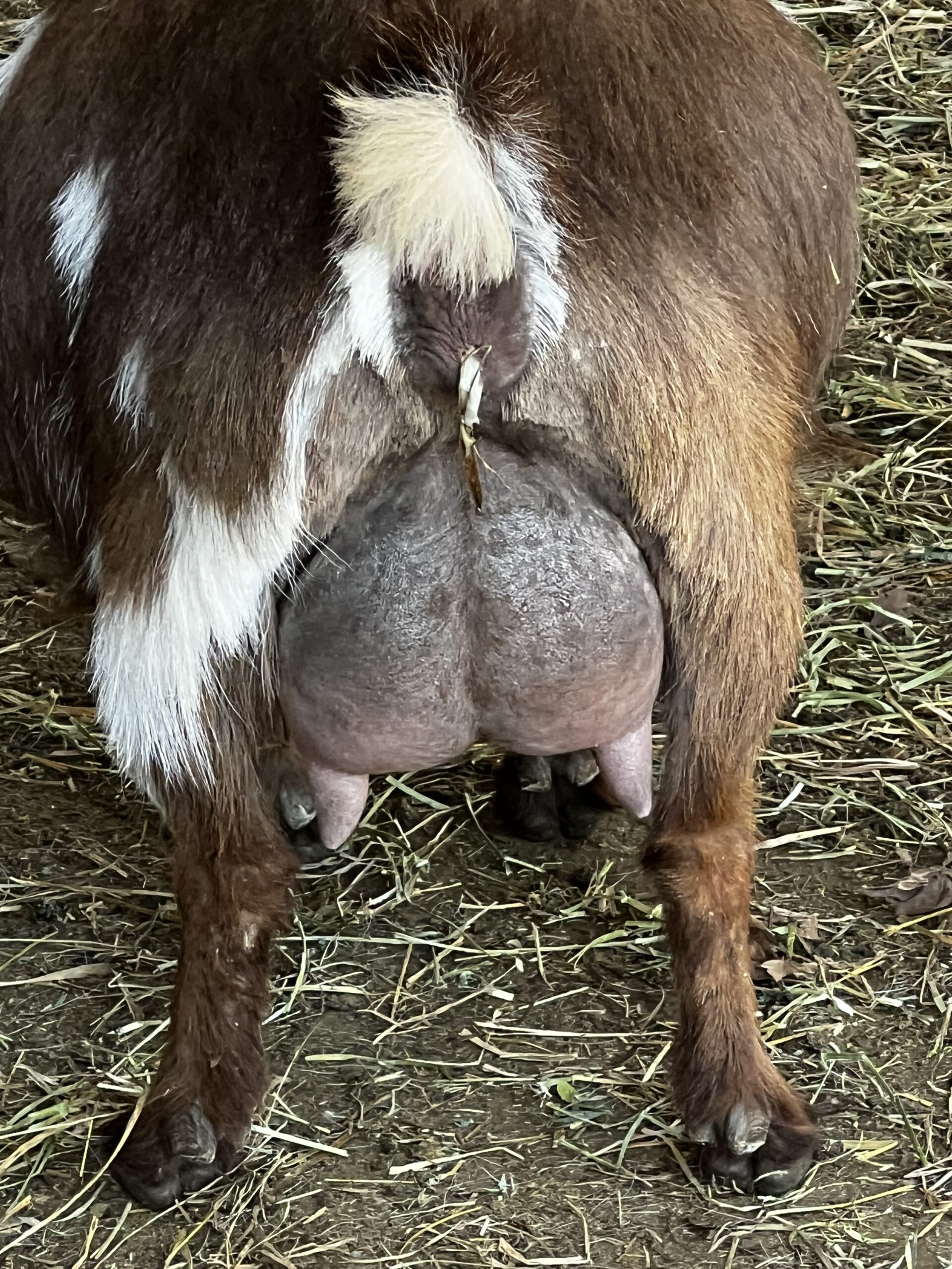 Sweetie was a very promising FF here in spring 2025, but she was sold in milk after kidding with 3 younger does.  She was offered back to us when her new herd dynamic wasn’t the best for her as she was the only mature doe in the herd.  I brought her back dry but really like how she’s matured.  She has become a very deep bodied doe with a super wide rump.  She has the highest rear udder I have ever seen and she developed the long teats that Vader passes.  Her 2F udder was superb as a pre-fresh.  I can’t wait to see her 2F udder as her milk comes in!